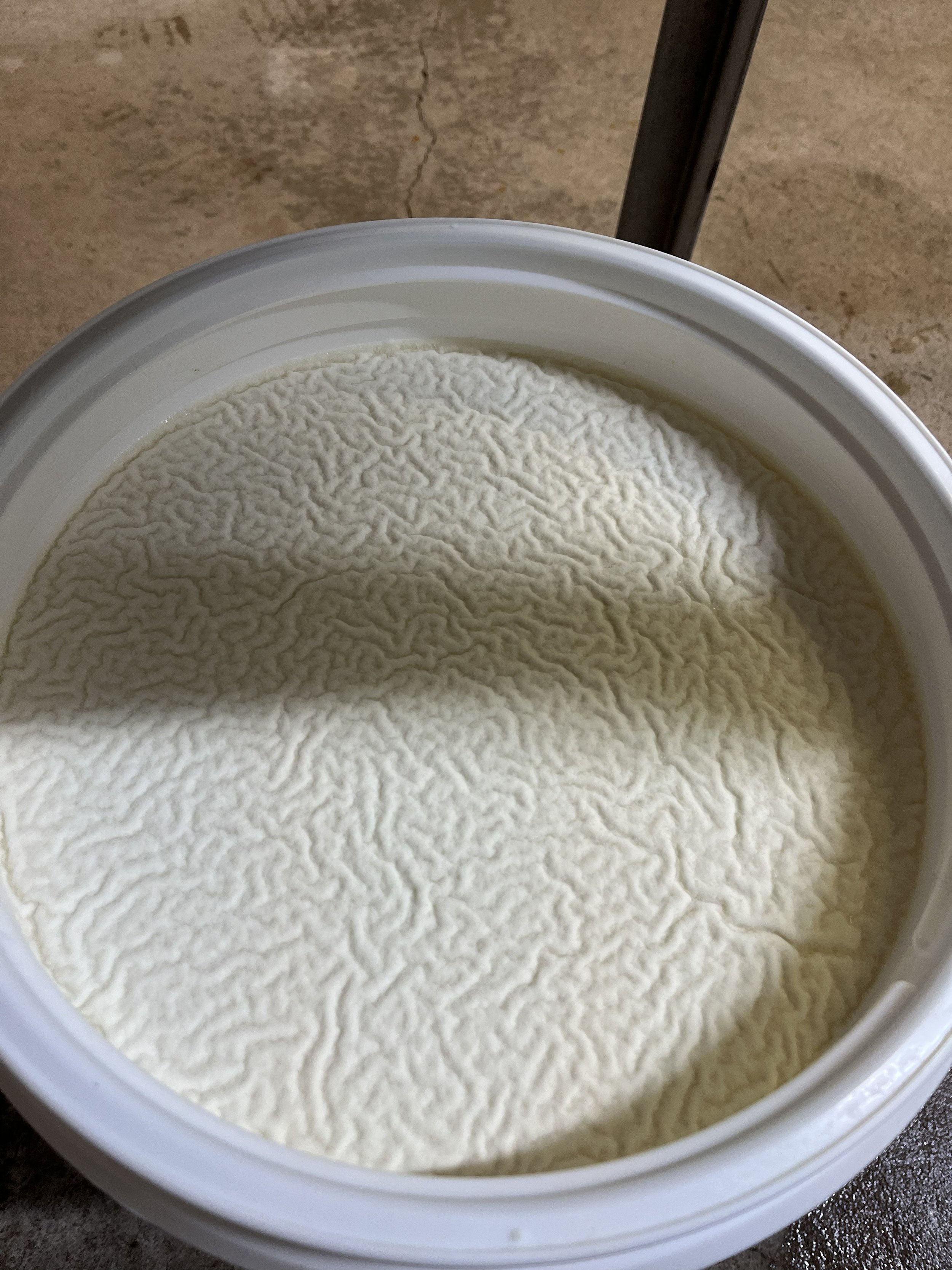 Bucket of whey with non-introduced geo-yeast film